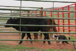 Molly works cattle, sheep, and goats, but her main forte is working cattle. Her dam is Pearl, a sister to Rick, and Molly's sire is Joe Raines' Hank, a strong cattle/goat dog.